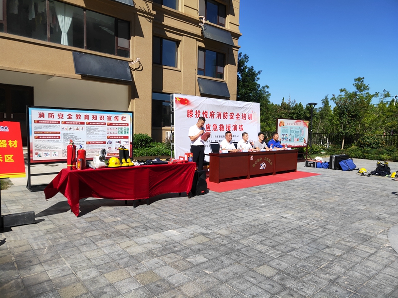 中秋國慶雙節將至,為進一步提升雙節期間消防應急救援能力,確保滕投集團各下轄小區度過一個安全穩定、歡樂祥和的佳節。9月21日下午,集團萬德物業公司聯合滕投悅府物業服務中心開展第三季度物業消防綜合演練活動。活動邀請了北辛街道文化路社區領導、滕州藍天救援隊救援人員、集團下轄14個物管項目經理和安全